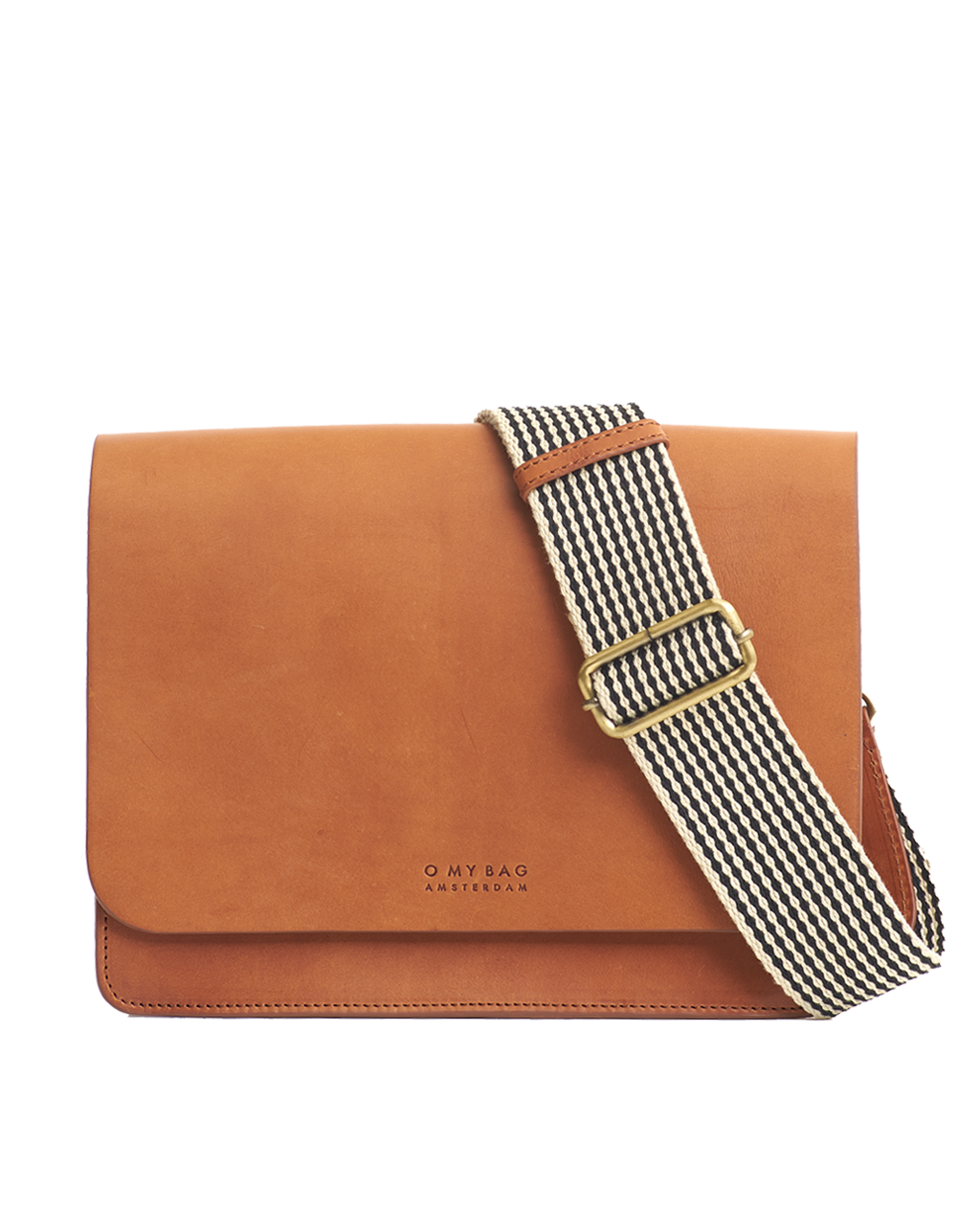 Audrey Classic Leather (Cognac) Checkered Strap - O MY BAG