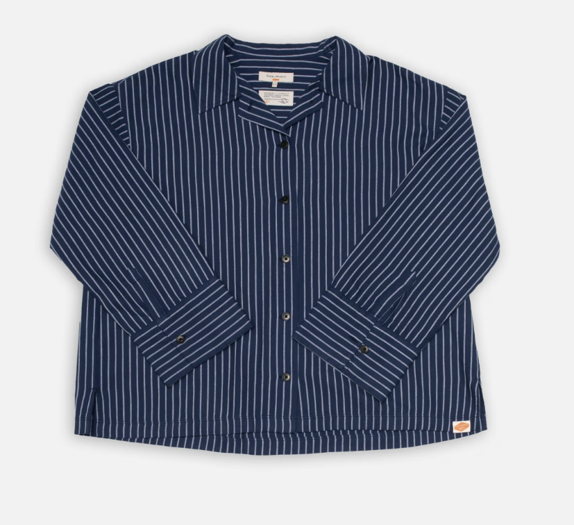 Long-sleeved shirt crafted in a light, striped weave with work-wear vibes made with organic and Fairtrade cotton. It has a clean, straight cut with a relaxed, comfortable fit that features a dropped shoulder seam and a roomy sleeve with a wide one-button cuff. When you buy this shirt, you can be sure that we have paid our share of living wages.