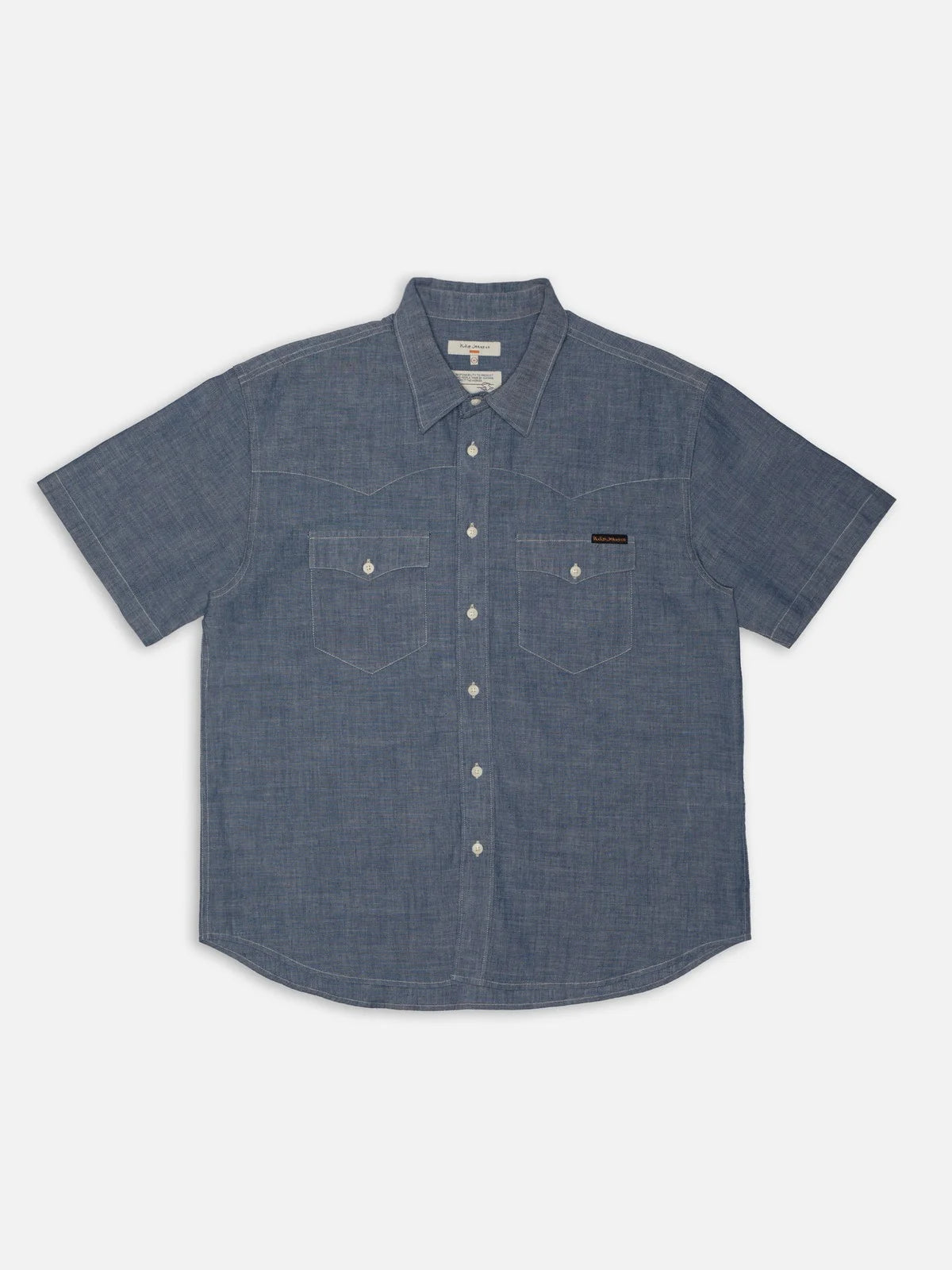 Short-sleeved shirt made from our favorite Turkish chambray. It has a beautiful mid-blue shade and a dry, cool hand. It features a pointed yoke at the front and back and a rounded bottom hem. The cotton used for this garment is organic and when you buy this shirt, you can be sure we have paid our share of living wages.