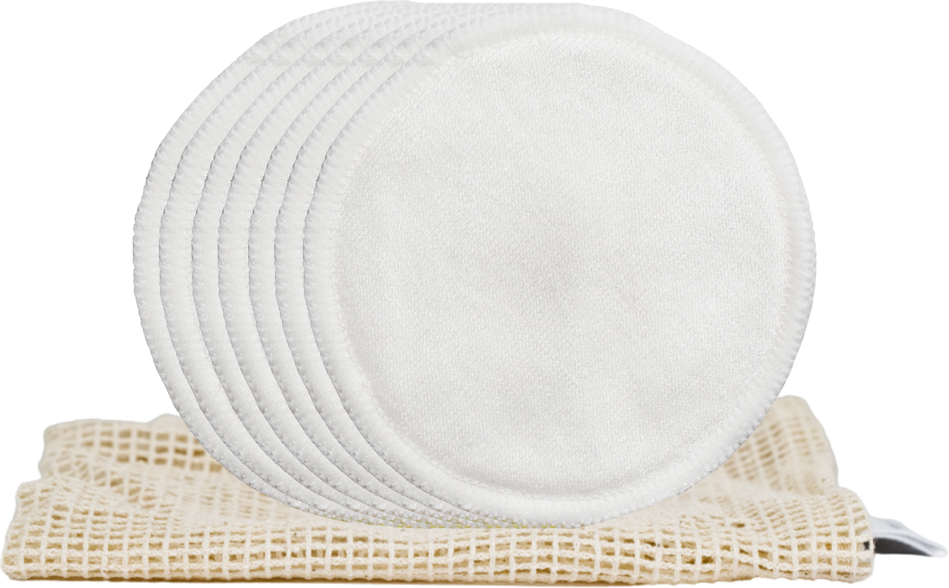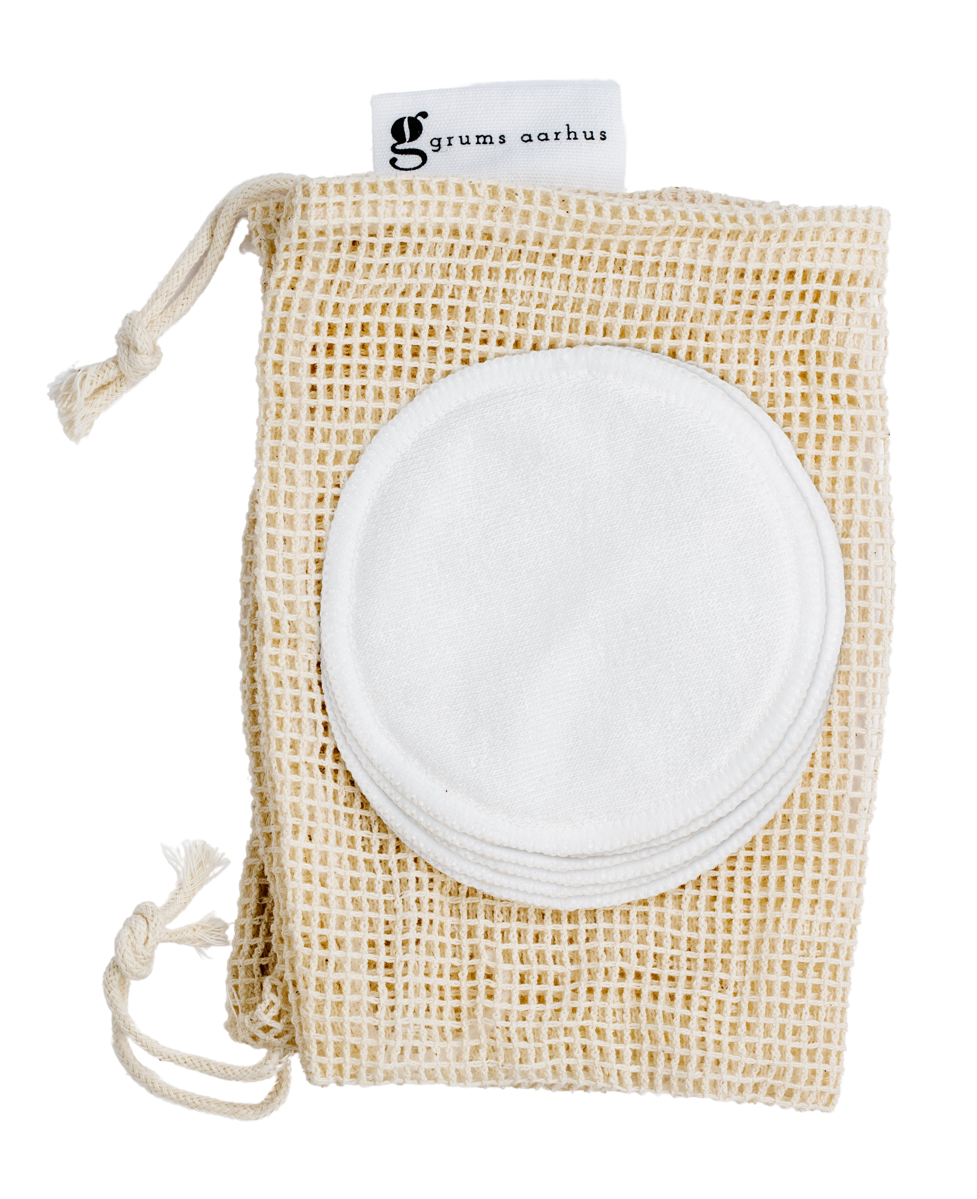 The reusable bamboo cotton pads by grums are an eco-conscious alternative to single-use cotton pads made of 60 % bamboo fibers and 40 % cotton. Each of these double-sided, three-layer pads provide a gentle exfoliation on one side and ultra softness on the other side. The bamboo fibres have an impressive absorption ability while the cotton gently rubs and cleans your skin. The reusable cotton pads can hold for up to 1000 washes depending on type of wash and usage. Laundry bag for washing and practical storage in your bathroom included.