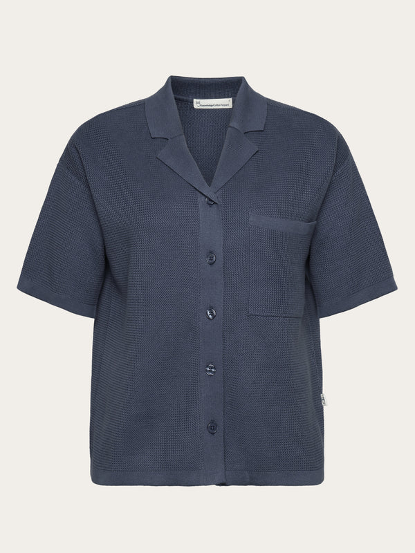 Racking Stitch Short Sleeved Shirt - Regenerative Organic Certified - GOTS/Vegan (Vintage Indigo)