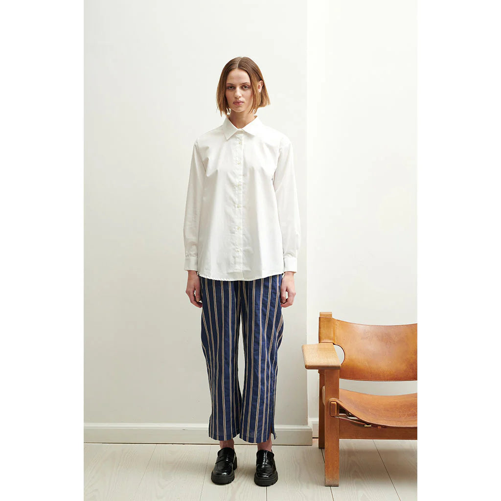 Helene Galliano has an impressive history as the shirt designer for Schulz by Crowd. The Sanne Shirt is her oversized interpretation of our classic shirt, made from a luxurious, heavy, and soft Tencel fabric sourced from Portugal.