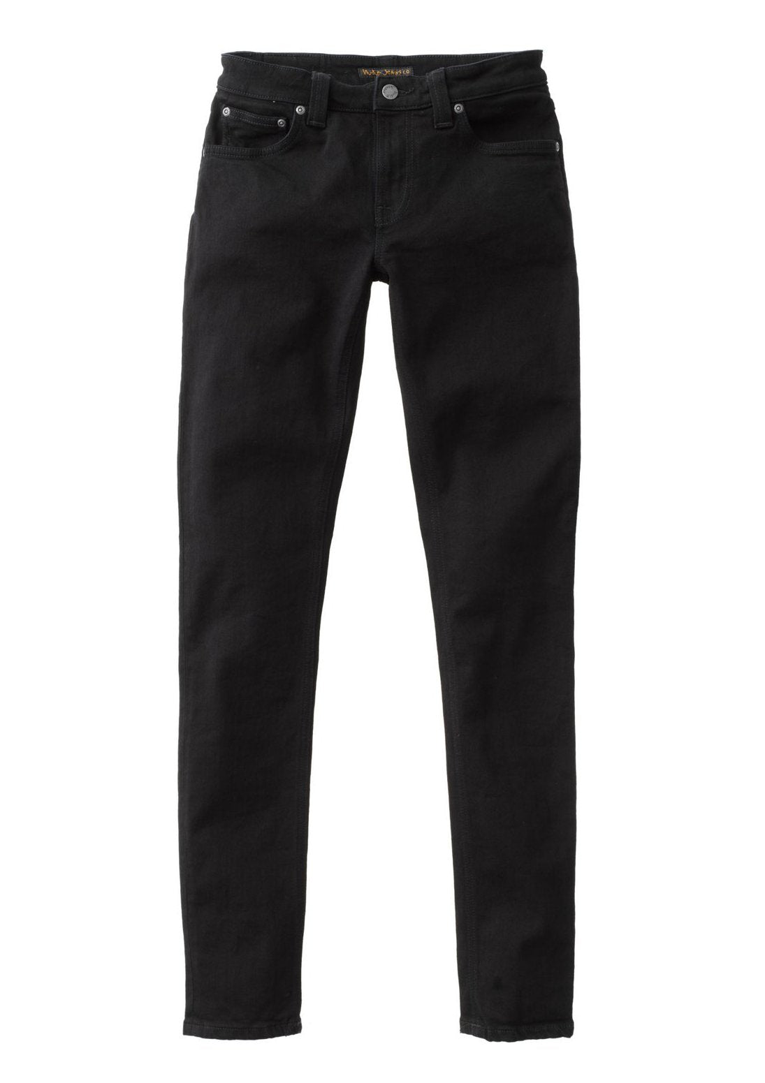 Super tight fitting low rise jeans in an all black version a favourite modern classic in the Nudie Jeans selection.