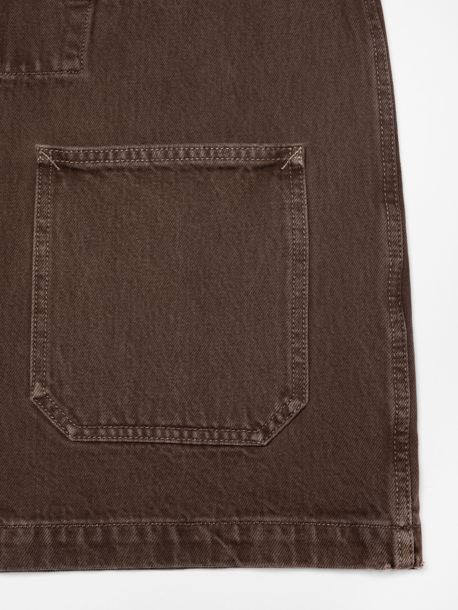 Dette stof er omhyggeligt konstrueret af uregelmæssige ringspundne garner, der er snoet til slidstærke 2-trådet tråde og derefter garnfarvet gennem en patenteret proces for at sikre, at det ældes smukt, ligesom dets historiske modstykke. De tætvævede, farvede garner skaber et fast, meget tekstureret lærred, der hylder dets ufuldkommenheder og fremviser en unik sprødhed og dybde. Dette robuste stof er perfekt egnet til arbejdstøj og lover holdbarhed og en yndefuld ældningsproces, der vokser sig rigere i karakter over tid.
