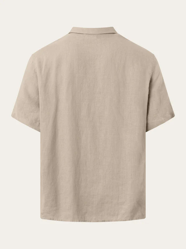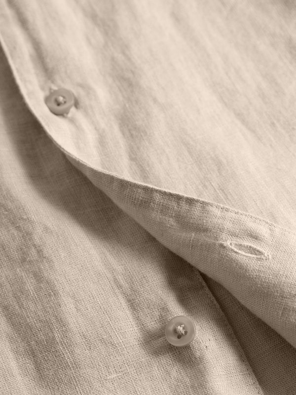 Vælg en klassisk og tidløs skjorte, der aldrig går af mode, og som du vil have lyst til at bruge igen og igen. Vores kortærmede skjorte er lavet af 100% økologisk hør. Kvaliteten føles utrolig blød, har en naturlig melangefarve og er det perfekte supplement til en komfortabel og bevidst garderobe. Designet i en firkantet pasform med en camp-krave og afsluttet med knaplukning.