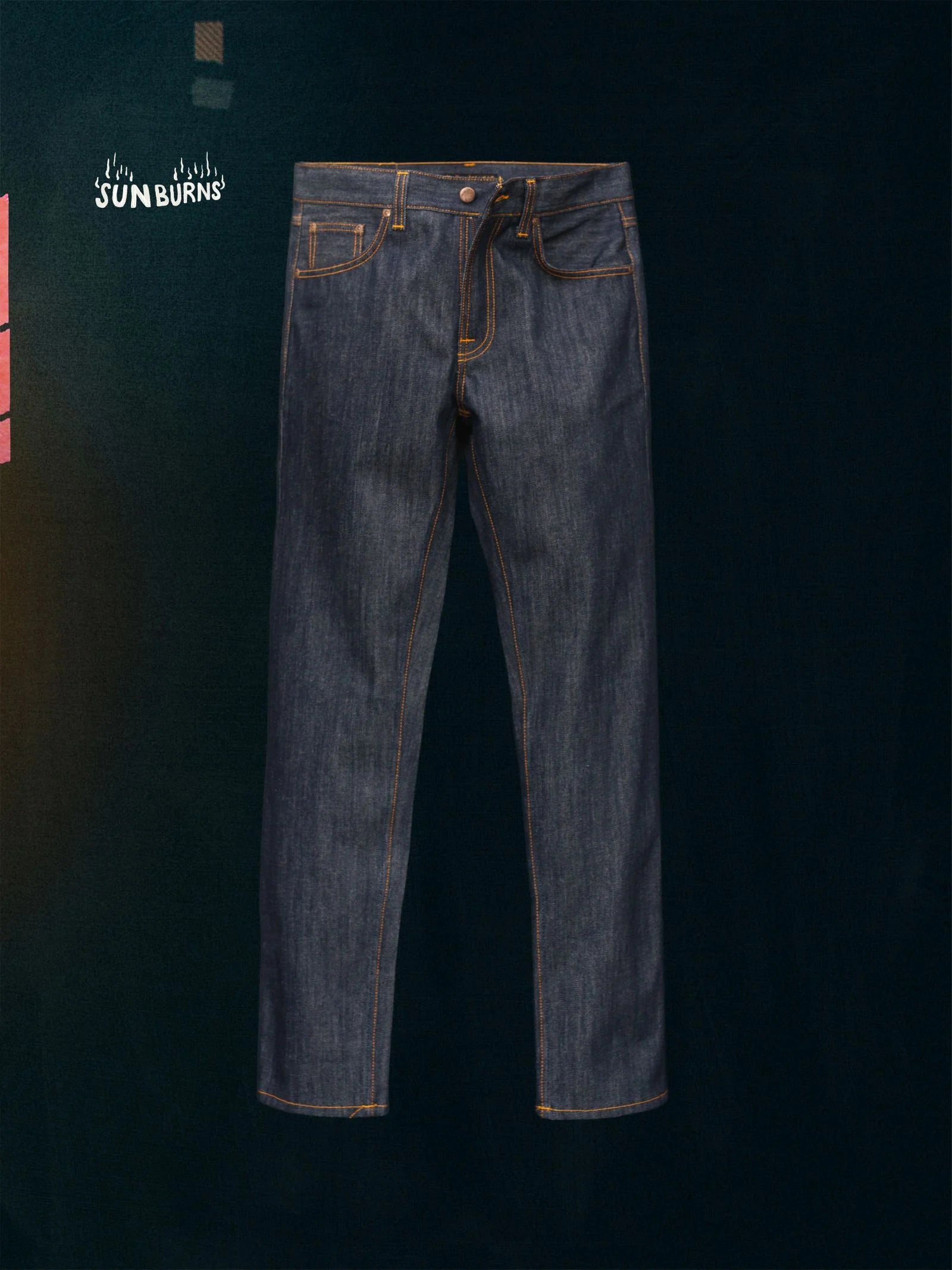 Beneath it all lies a proprietary 14.2 oz denim, developed exclusively for Nudie Jeans. Woven with Regenerative Organic Cotton, it revives the raw, textured character of a pair of ‘90s jeans we once stumbled upon. Though undeniably "modern," these jeans are rooted in a transitional era—a time when vintage ring-spun textures resurfaced, and select denim mills strayed from pure efficiency in pursuit of true vintage aesthetics. A defining moment—just before Nudie Jeans was born.