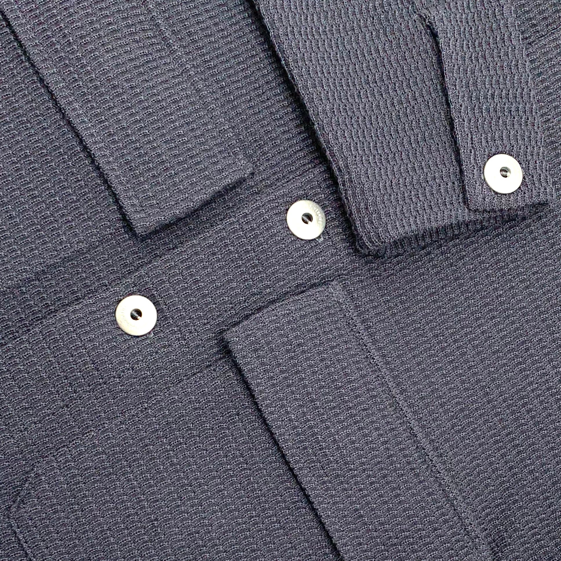 RADIAL-jakken i tordengrøn er et smukt håndværksmæssigt stykke 100% ny uld, der tilbyder en perfekt balance mellem varme og raffineret tekstur. Med en vægt på 1,28 kg er denne jakke lavet af en tæt, men fin 12-gauge strik, hvilket gør den ideel til både koldere dage og lag-på-lag-tøj. Designet suppleres af slidstærke metalknapper, der giver et robust, men sofistikeret touch.