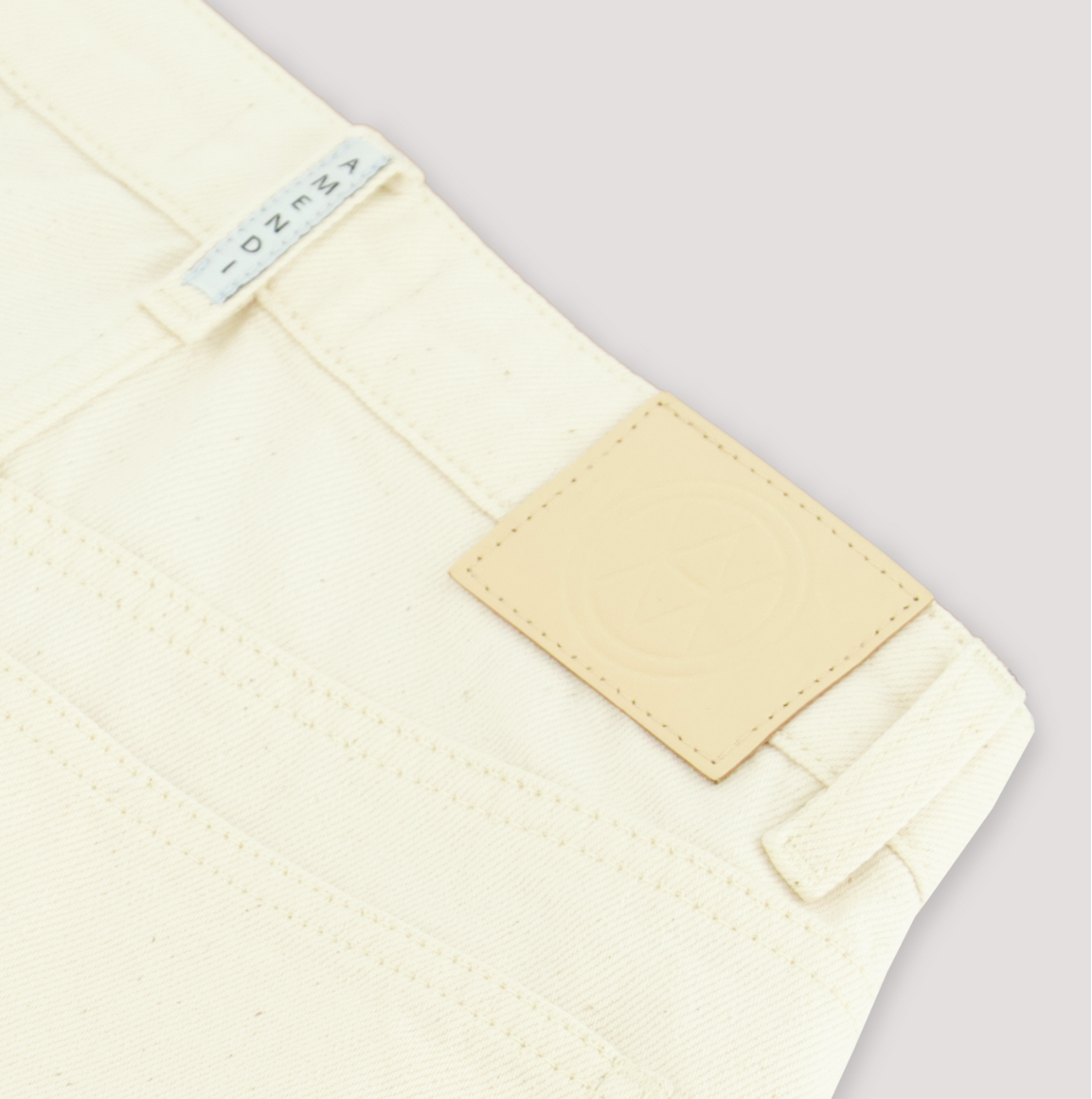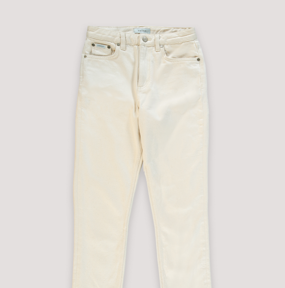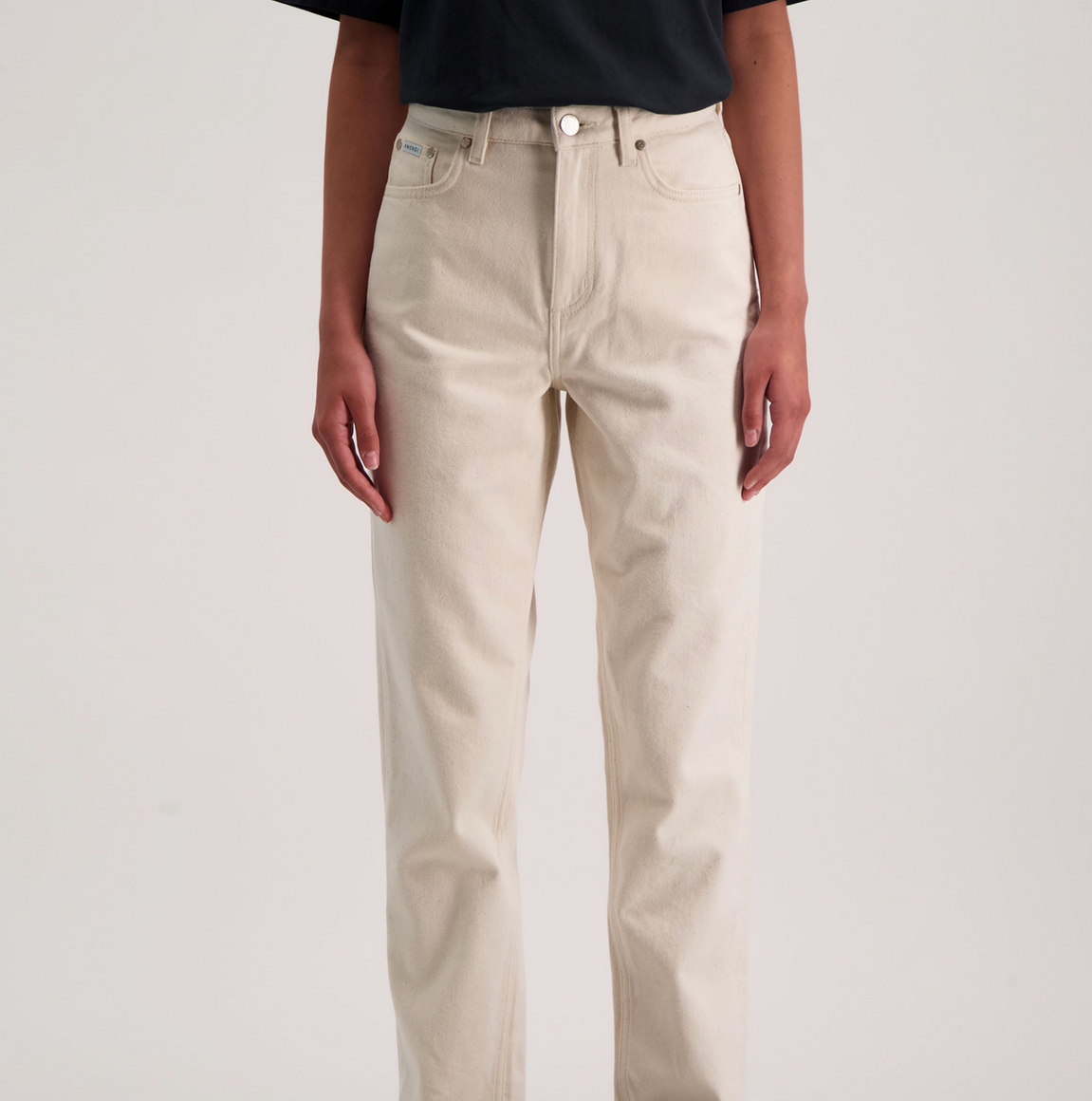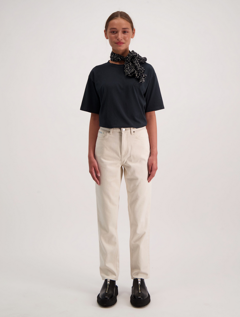 Denne ufarvede farve fremhæver den naturlige tone i den økologiske bomuldsbolle. Kombiner den med den naturhvide ufarvede Ivy-denimjakke for en moderne denimsmoking.